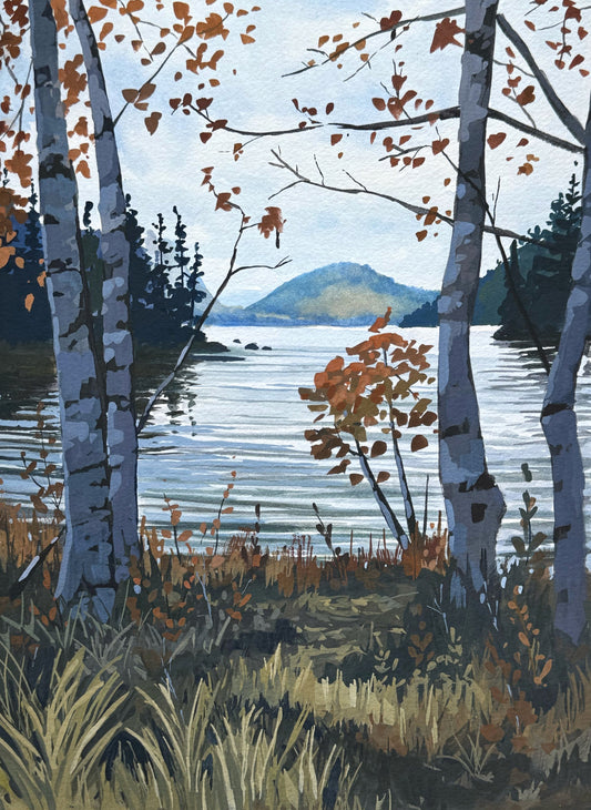 'Autumn at Eagle Lake' Original Gouache Painting