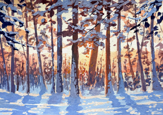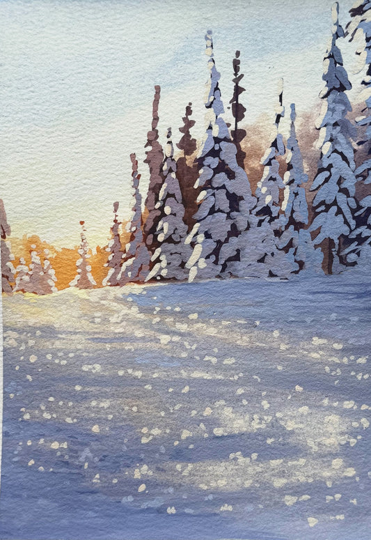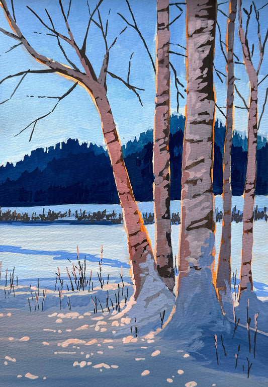 'Winter Shadows' Original Gouache Painting