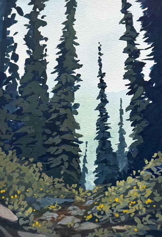 'Among the Evergreens' Original Gouache Painting