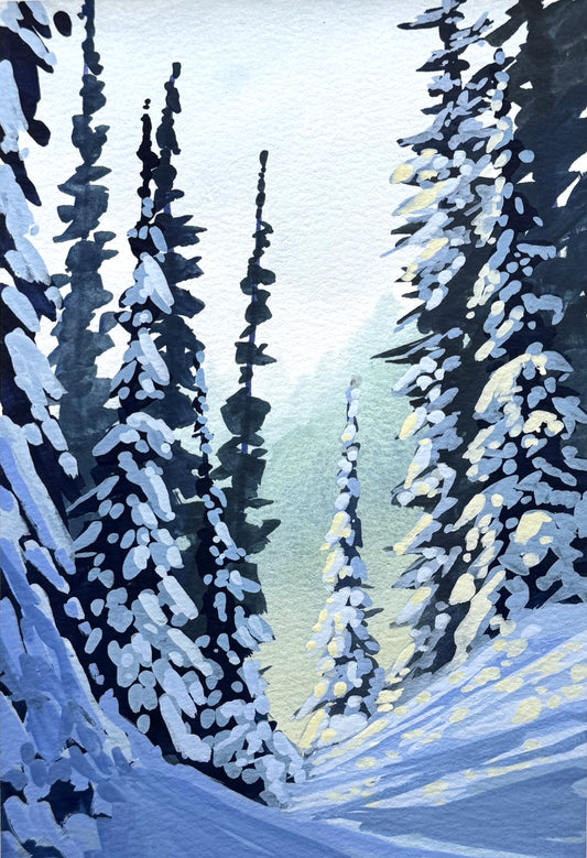 'Snowy Slopes' Original Gouache Painting