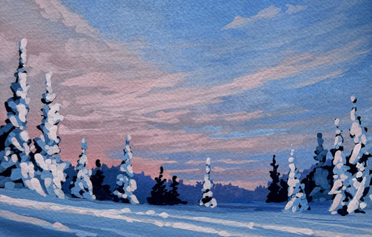 'Winter Pastel Sky' Original Gouache Painting