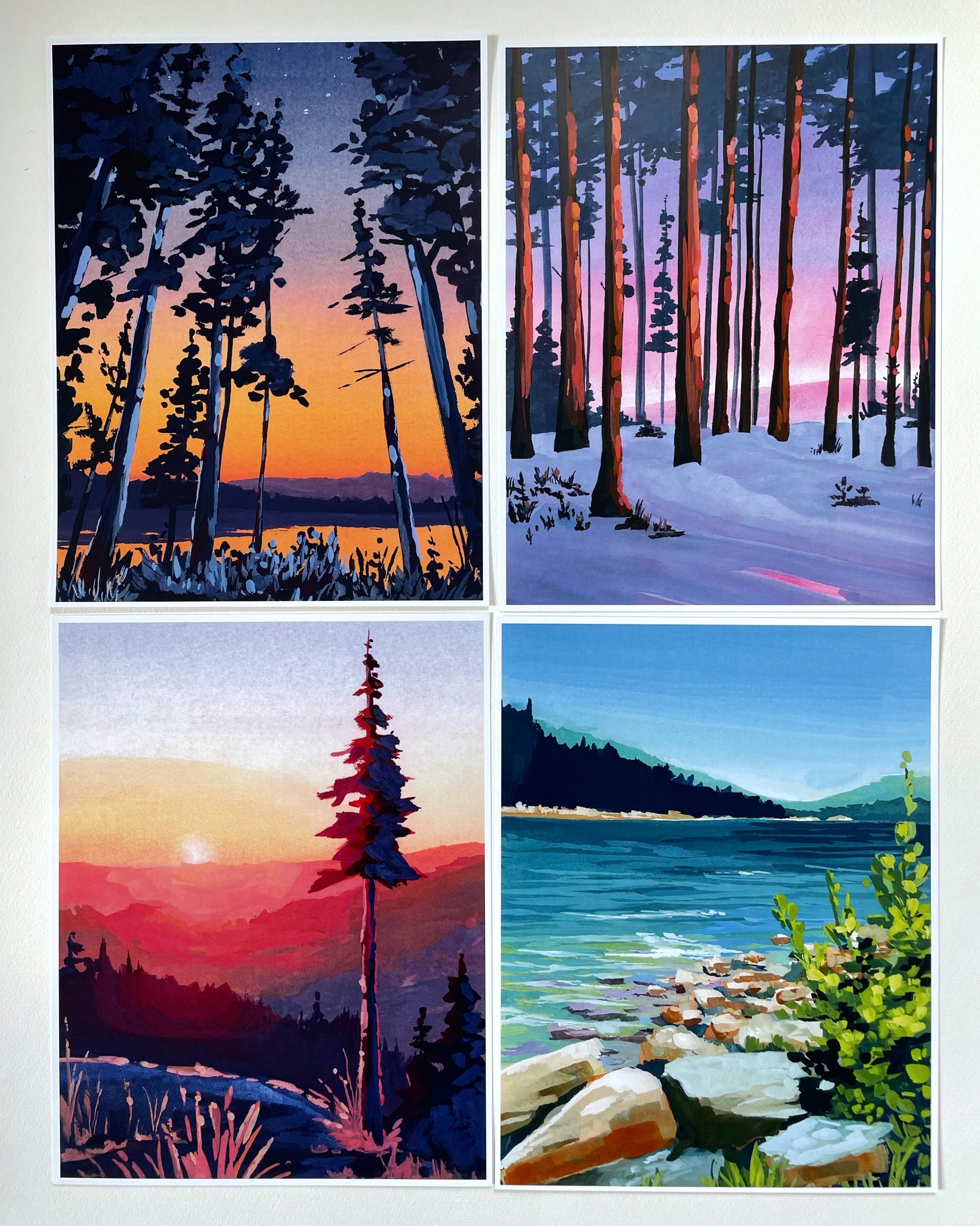 This is an a bundle featuring four art prints: “Jordan Pond ii”, “Beneath the Stars”, “Brilliance” and “Blazing Winter Sunset ii”