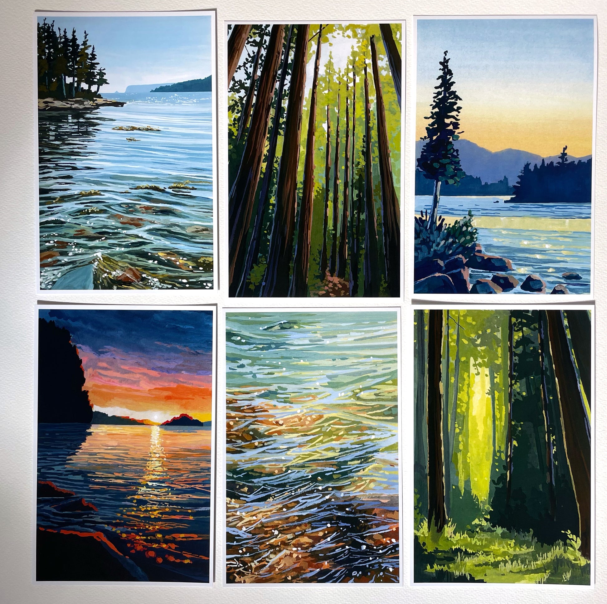 This is an a bundle featuring six art prints: “Breathe In”, “Muir Woods i”, “Summer by the Lake”, “Sparkling Lake Sunset”, “Transparency” and “Forest Floor”