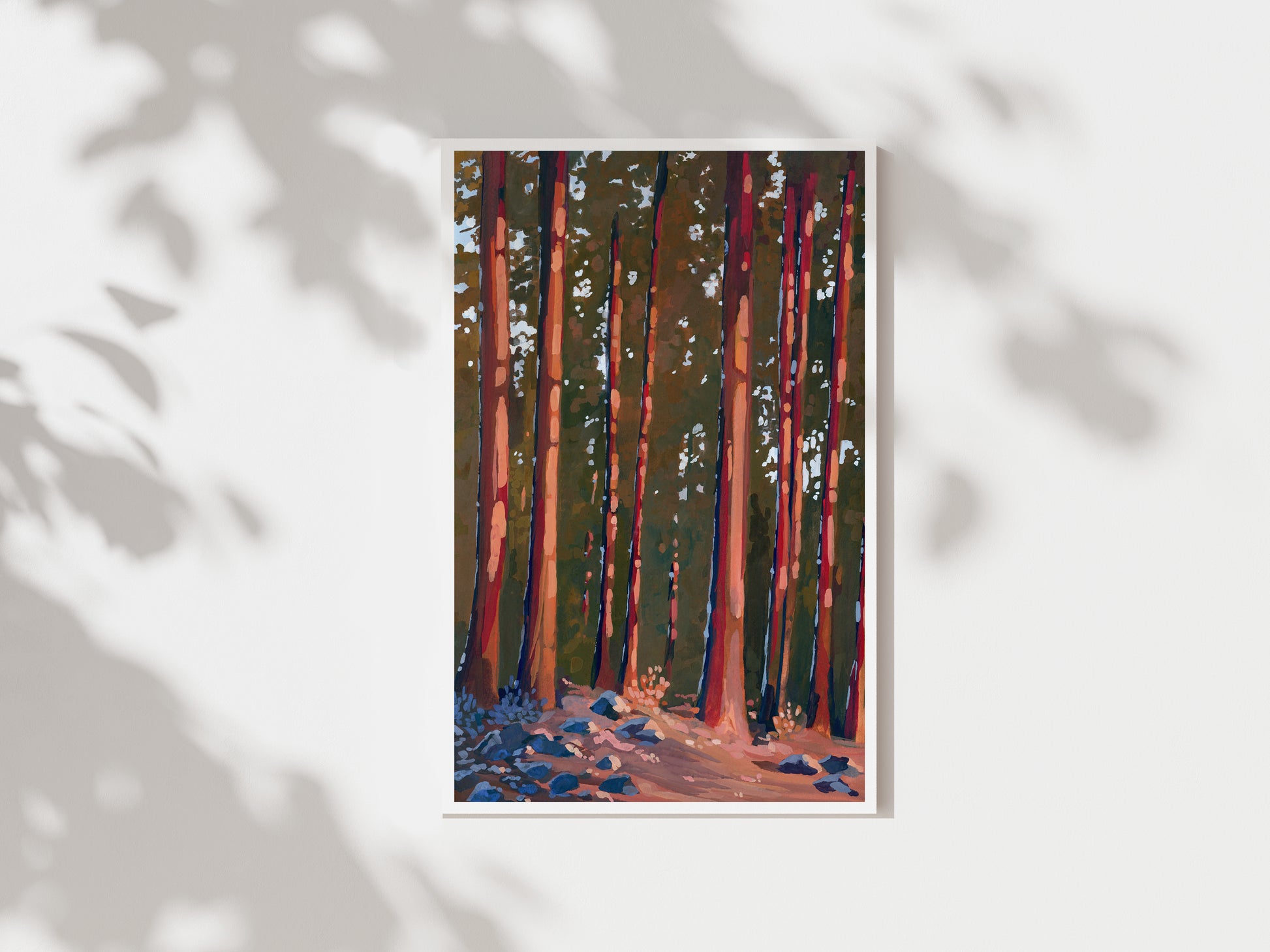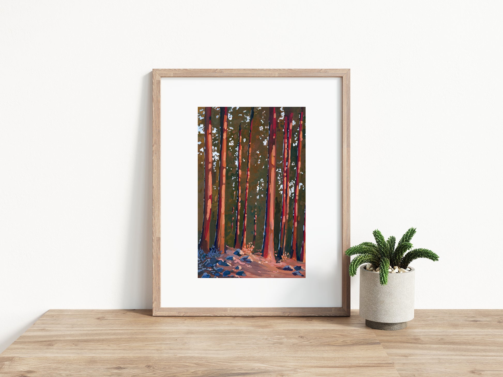 This is an art print reproduction of the original gouache landscape painting ‘North Woods’.